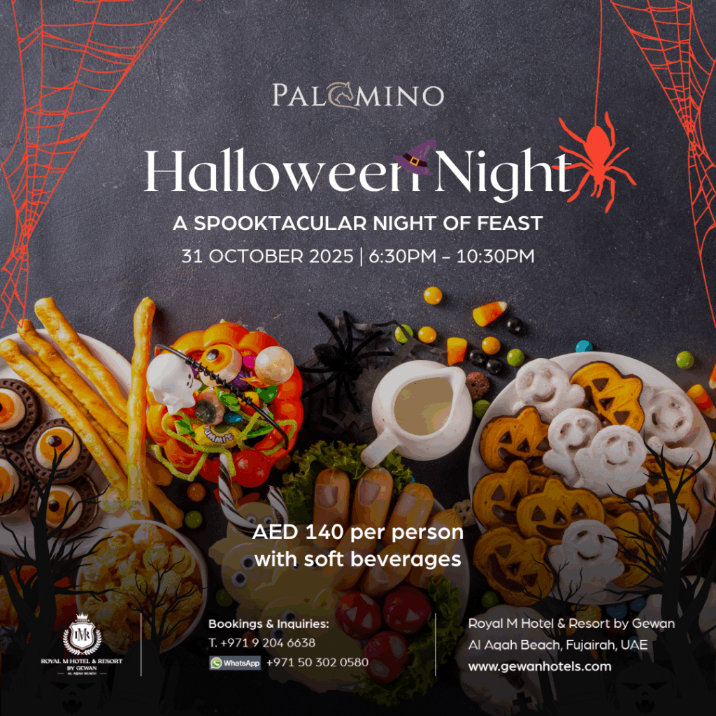 October is shaping up to be a month full of flavor, fun, and festivity across all Royal M Hotels by Gewan. From spooktacular Halloween events to vibrant Diwali celebrations and themed brunches, there’s something special for every guest — whether you’re in Abu Dhabi, Al Aqah, or Fujairah.