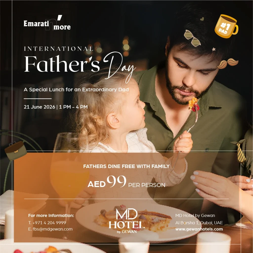 🎉 Fathers Dine FREE (when accompanied by family)🍽️ AED 99 per person
